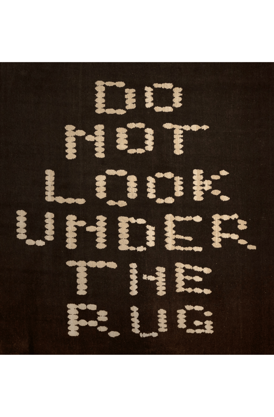 Do Not Look Under The Rug, 2025 by Hayden Kays - Part of the collaborative exhibition POST HUMAN VII x THAMES CARPETS Curated by Tobias Ross-Southall. The exhibition was held at Cramer Street Gallery, which coincided with Frieze London. This collaboration brings contemporary artists into dialogue with the ancient craft of weaving, translating their visions into 100% natural, handwoven, luxury art collectibles. Historically, rugs and tapestries have told stories, marked power and captured cultural shifts. We’re continuing that lineage, using hand woven carpets as a new site for contemporary expression. In today’s art spaces, rugs act as both object and surface; sculptural, political and deeply material. Like digital code, weaving is built on binary logic; warp and weft, over and under, making it a perfect medium to translate today’s visual language. Through Thames Carpets’ historic craft, these works ground post-human themes in material, tradition and time. For sales enquiries and pricing, please contact Cramer St Gallery: info@cramerstgallery.com