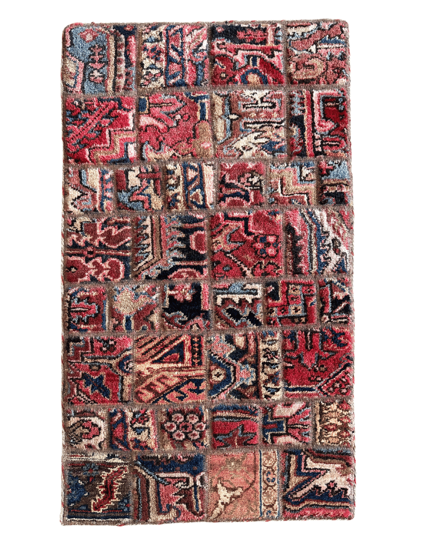 Crafted from the resilient remnants of a once-glorious vintage Persian rug, our new patchwork collection blends the elegance of tradition with the innovation of contemporary design. Each patch tells a story, preserving the heritage of the past while embracing the ethos of sustainability through recycling.