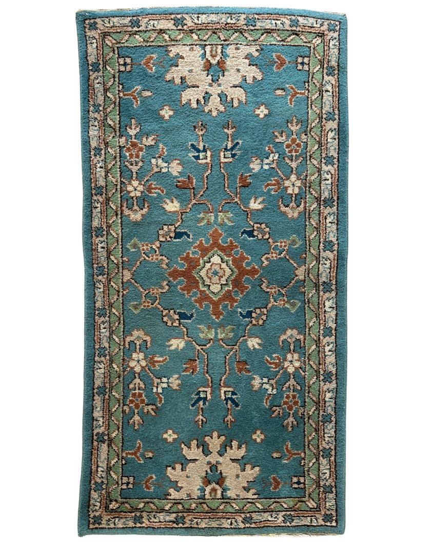 A charming and unusual snowflake design rug. The spacious and balanced design pairs beautifully with calming blues and browns. Cosy high pile.