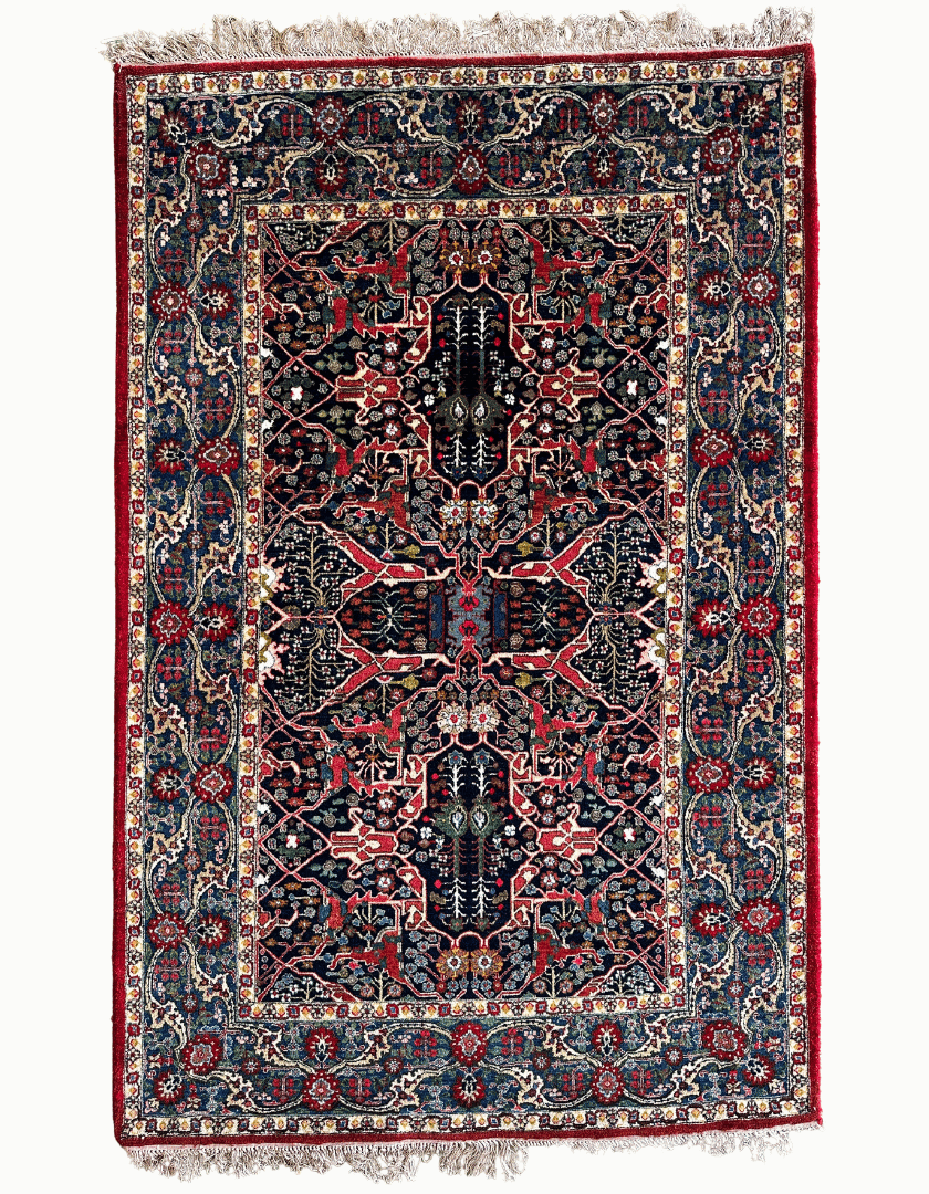 A vintage rug by Thames Carpets handmade with extremely durable wool and lustrious silk. The design in inspired by 17th century Persian carpets.